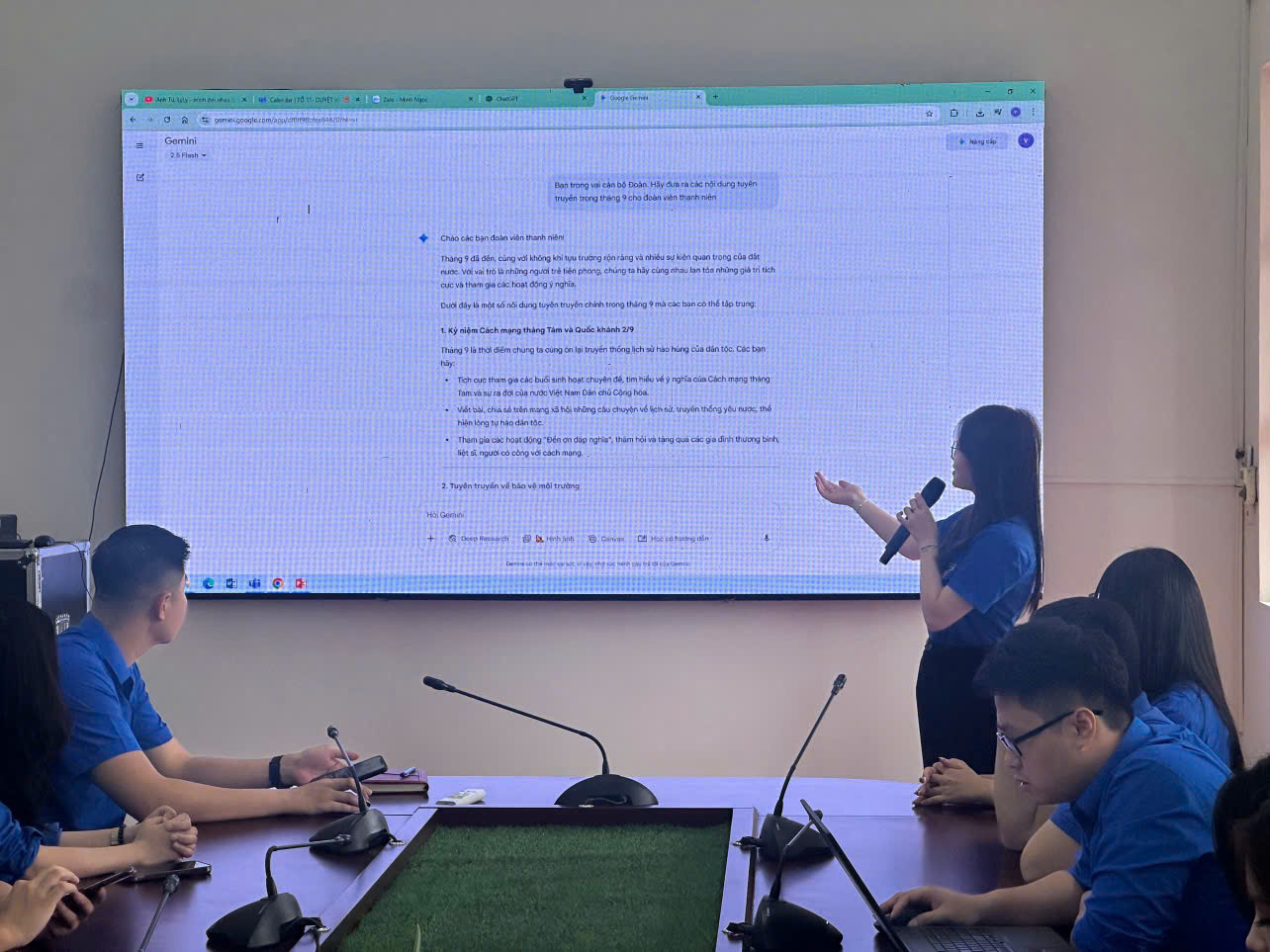 Đặc biệt, chương trình đã có phần hướng dẫn trực tiếp cách sử dụng các công cụ như ChatGPT, Gemini trong việc soạn thảo nội dung, gợi ý ý tưởng, thiết kế poster, video và ấn phẩm truyền thông. Qua trải nghiệm thực tế, đoàn viên, thanh niên có cơ hội rèn luyện kỹ năng ứng dụng công nghệ số vào hoạt động Đoàn, đồng thời tiếp cận các mô hình mới như phục dựng tư liệu bằng AI hay xây dựng hệ thống dữ liệu số hóa phục vụ công tác tuyên truyền.