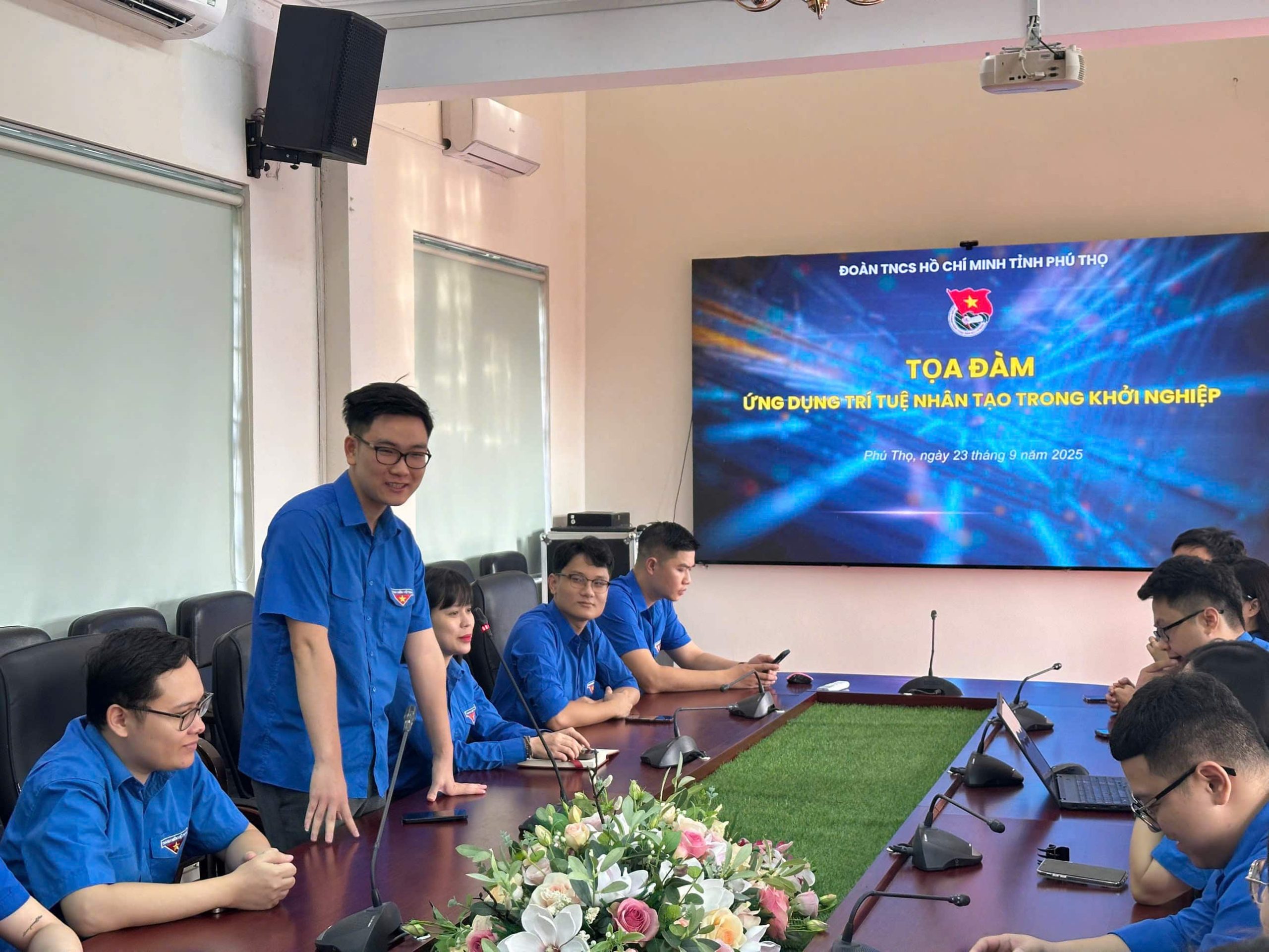 Ngày 23/9/2025, tại Hội trường lớn – Tỉnh đoàn Phú Thọ, Ban Thường vụ Tỉnh đoàn tổ chức tọa đàm với chủ đề “Ứng dụng trí tuệ nhân tạo trong khởi nghiệp”. Tham dự chương trình có các đồng chí Thường trực Tỉnh đoàn, cán bộ, đoàn viên thanh niên tiêu biểu, cùng đại diện các câu lạc bộ, đội, nhóm khởi nghiệp trên địa bàn.