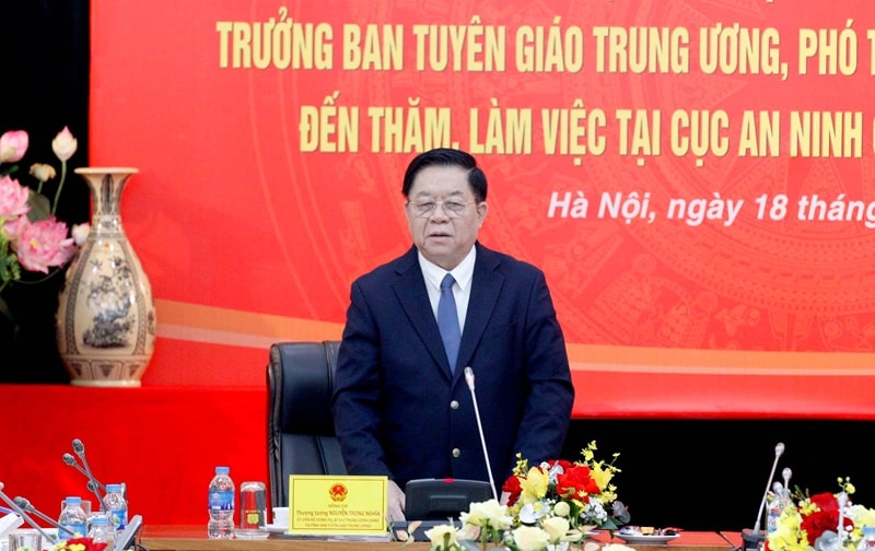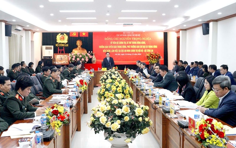 Chiều 18/12, đồng chí Nguyễn Trọng Nghĩa, Ủy viên Bộ Chính tri, Bí thư Trung ương Đảng, Trưởng Ban Tuyên giáo Trung ương, Phó Trưởng Ban Chỉ đạo 35 Trung ương và đoàn công tác đã thăm và làm việc tại Cục An ninh chính trị nội bộ, Bộ Công an.