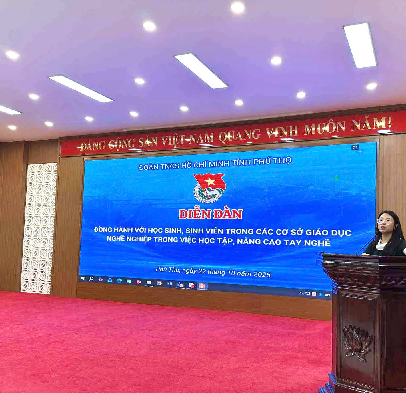 Ngày 22/10/2025, Ban Thường vụ Tỉnh Đoàn Phú Thọ tổ chức Diễn đàn đồng hành cùng học sinh, sinh viên các cơ sở giáo dục nghề nghiệp trong học tập, nâng cao tay nghề năm 2025.