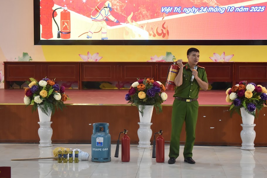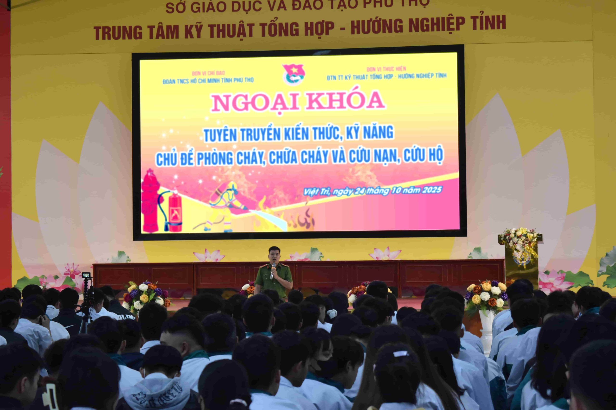 Trong thời gian cao điểm hưởng ứng Ngày Pháp luật nước Cộng hòa xã hội chủ nghĩa Việt Nam 9/11, nhằm nâng cao kiến thức, kỹ năng phòng cháy, chữa cháy và cứu nạn, cứu hộ (PCCC và CNCH) cho cán bộ, giáo viên, học sinh, ngày 24/10/2025, Tỉnh đoàn Phú Thọ phối hợp với Đoàn phường Việt Trì, ĐTN Trung tâm Kỹ thuật tổng hợp và hướng nghiệp tỉnh đã tổ chức tuyên truyền kiến thức, thực hành PCCC và CNCH.